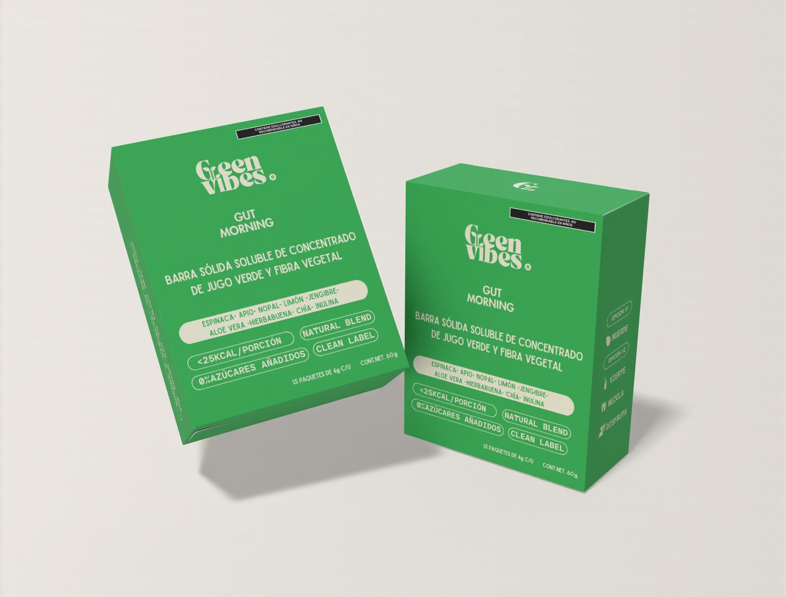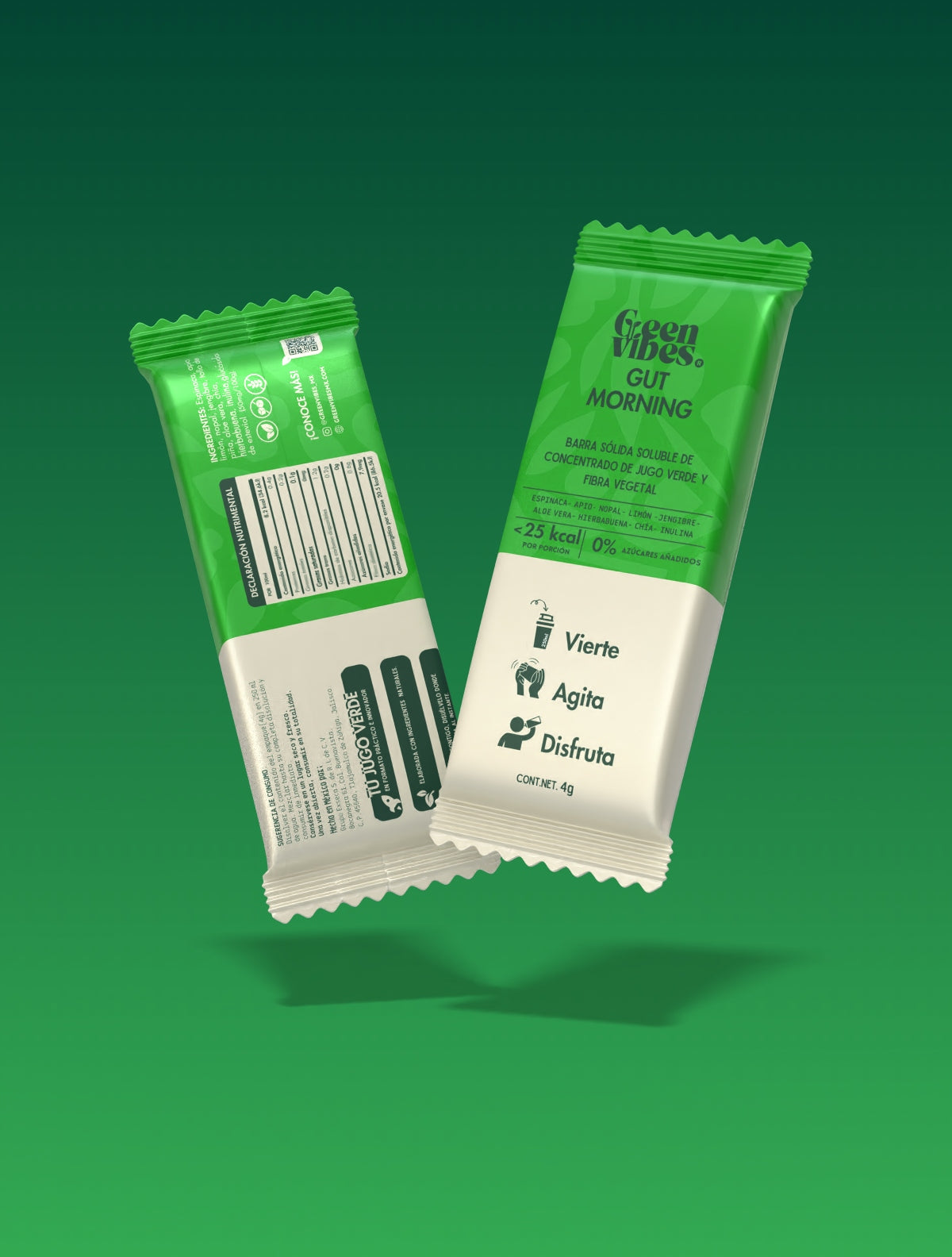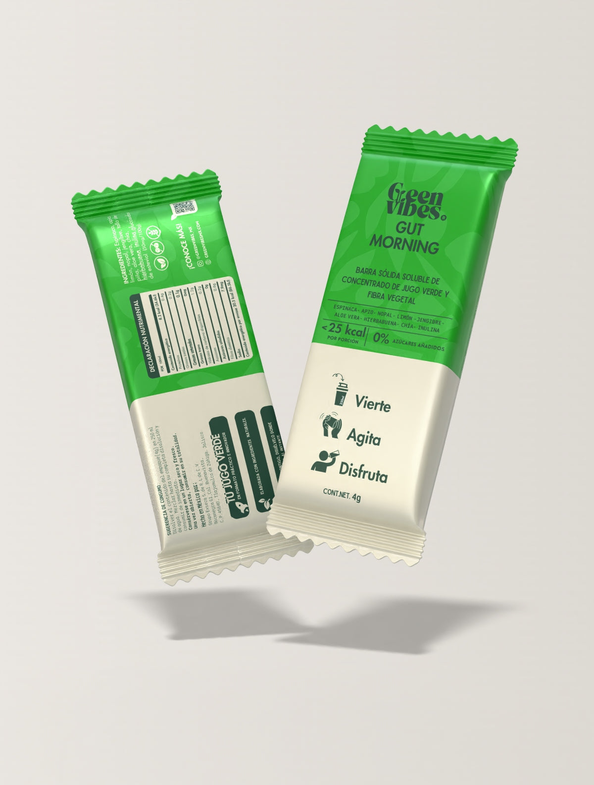 Barra sólida soluble de jugo verde. sin azúcares añadidos y etiqueta limpia. Formulado para apoyar la salud digestiva y metabólica.